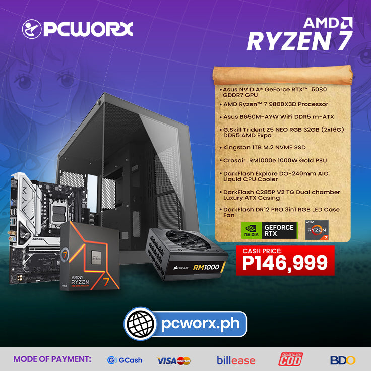 0000069953 AMD Ryzen 7 9800X3D, 4.7 GHz, 16-thread, 8-core processor. 0000071108 Asus B650M-AWV WIFI ASM DDR5 m-ATX motherboard. 0000059268 G.SKILL...