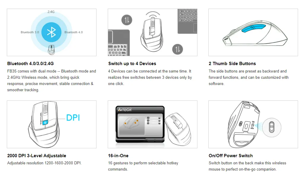 A4tech FB35 Icy Bluetooth 2.4G Wireless Mouse Grey