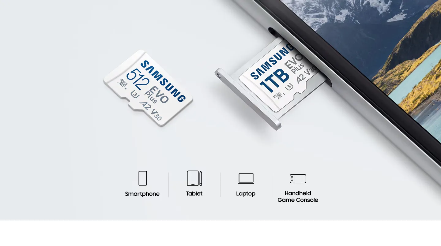Be ready for wherever life takes you. The versatility of EVO Plus makes it compatible with virtually everything from Android smartphones and tablets to handheld gaming consoles and laptops, so you can store and manage those larger files with confidence and ease.