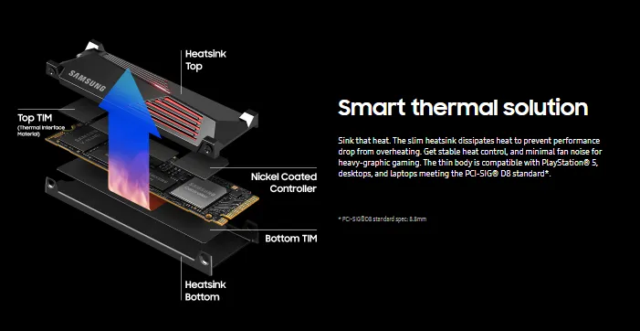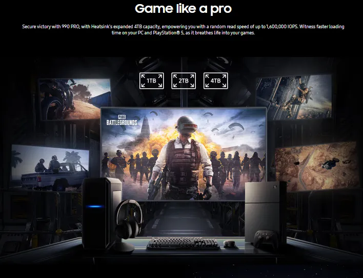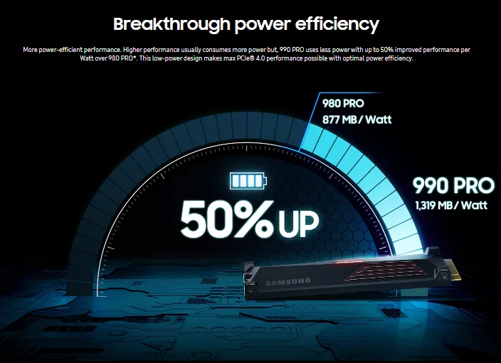 The best gameplay experience. A more than 55% improvement in random performance enables faster loads for ultimate gaming realism on PS5 and DirectStorage PC games. The heatsink’s futuristic design adds style to heat control, now with RGB lights.