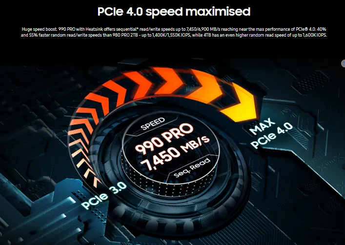 Up to 7,450 MB/s * Performance may vary based on system hardware & configuration |