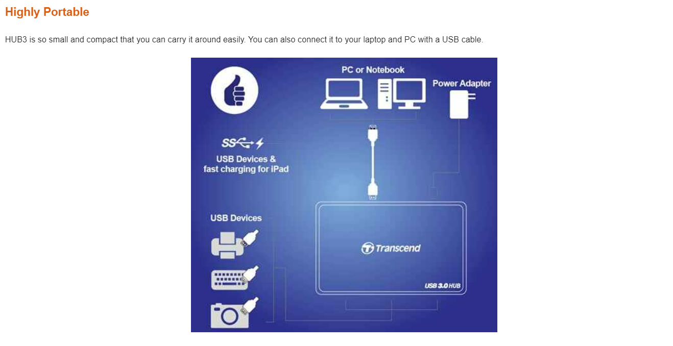 | Note: Please be sure to connect both the USB port and the power adapter at the same time in order to use this product. | |