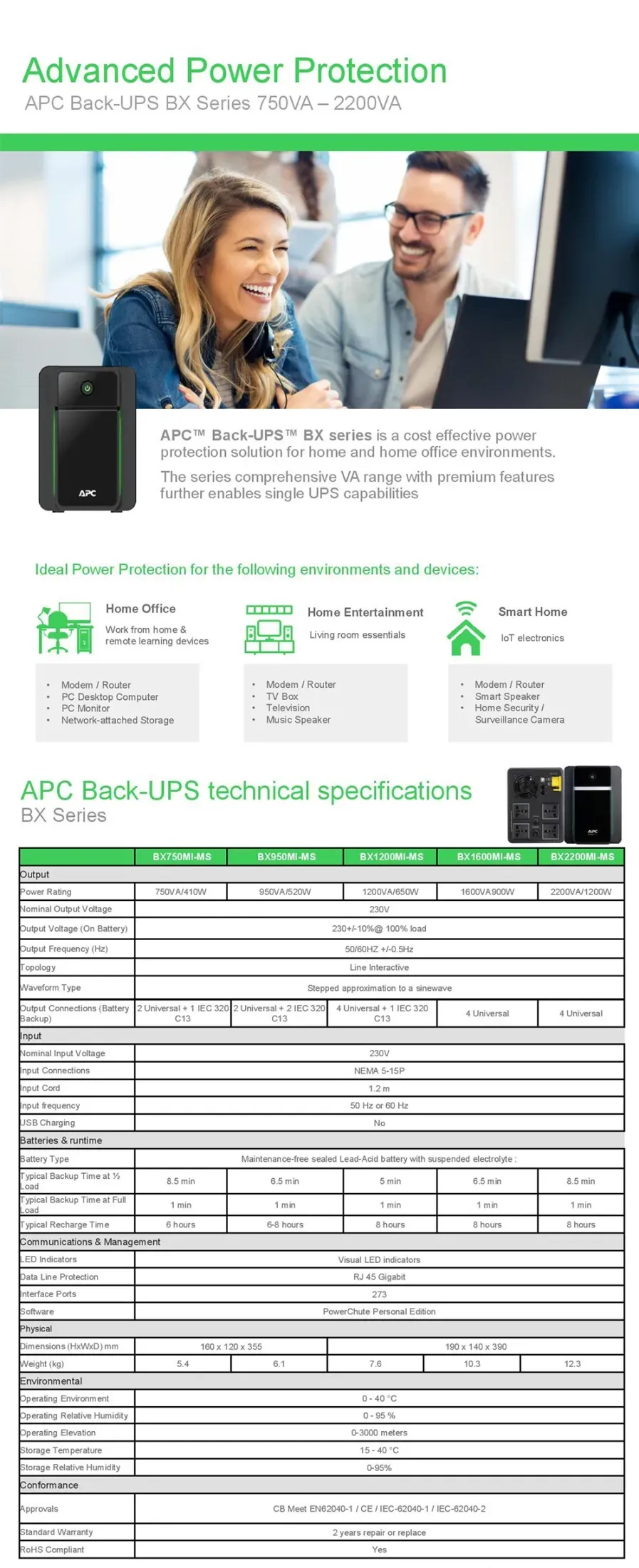 Specifications: Power Capacity: 2200VA / 1200 Watts Topology: Line-Interactive Output Voltage: 230V (On Battery: 230V +/- 10% at 100% load)... Read more