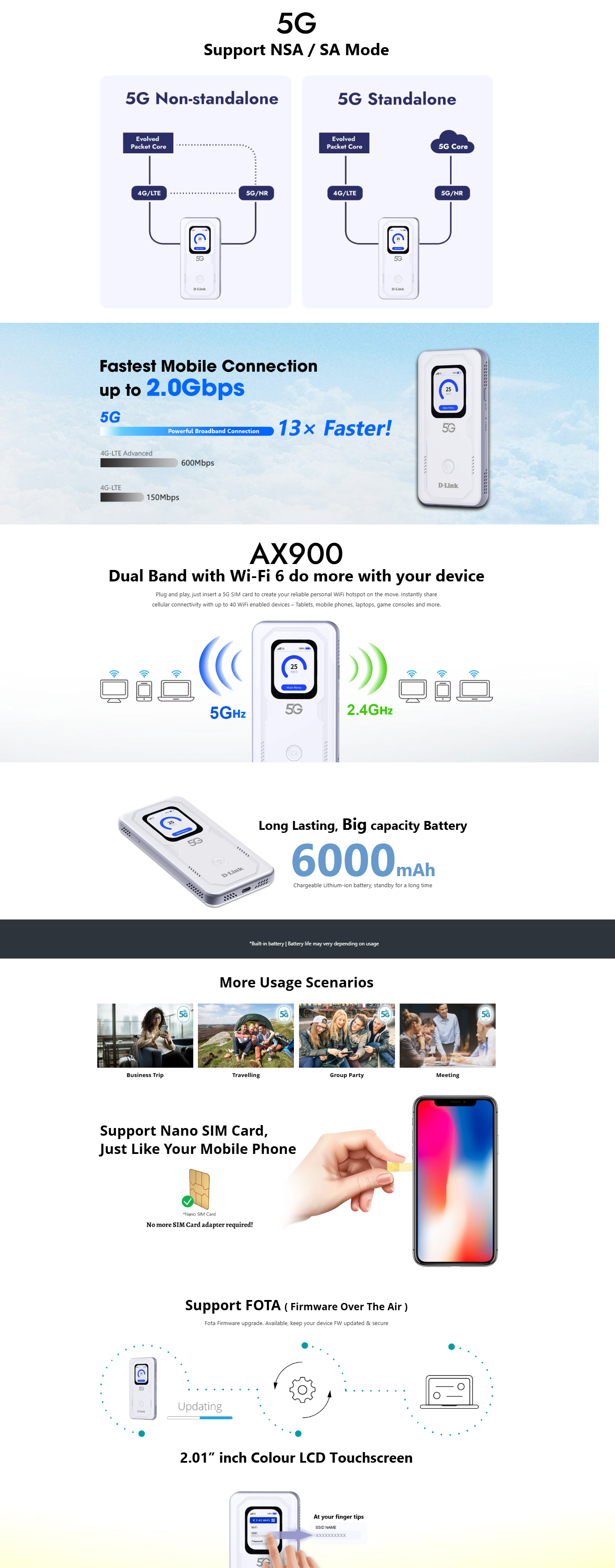 D-Link DWR-U2100 5G NR Wi-Fi 6 AX900 MiFi Mobile Router (with 5,000mAh)