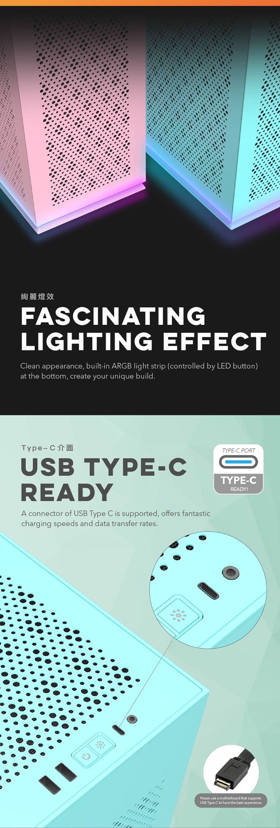 USB 3.0 ‘ Type-C’ HD Audio’ LED switch’ Power |