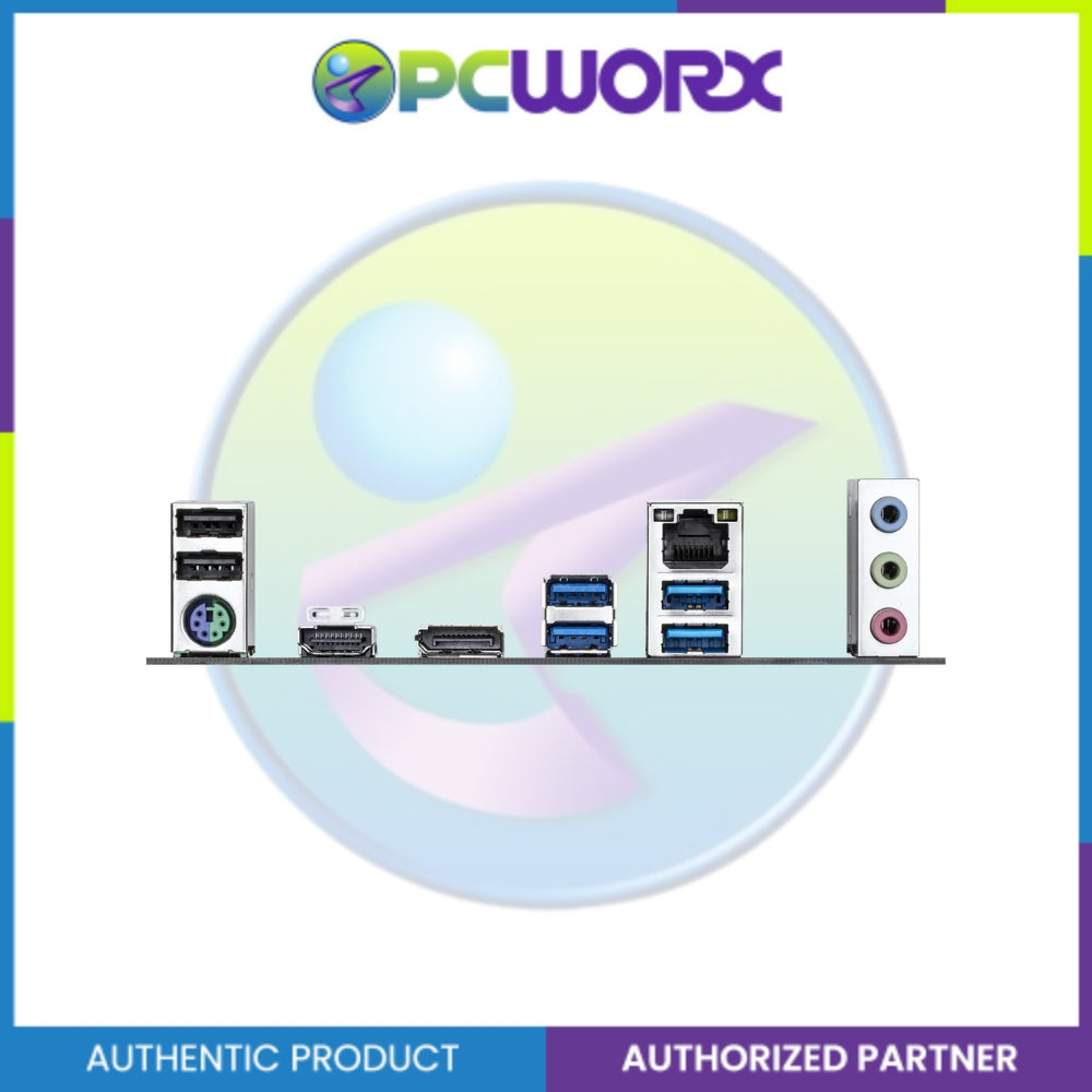 2 x USB 2.0/1.1 ports 1 x PS/2 keyboard/mouse port 1 x HDMI port (Note) 1 x DisplayPort (Note) 4 x USB 3.2 Gen 1 ports 1 x RJ-45 port 3 x audio jacks
