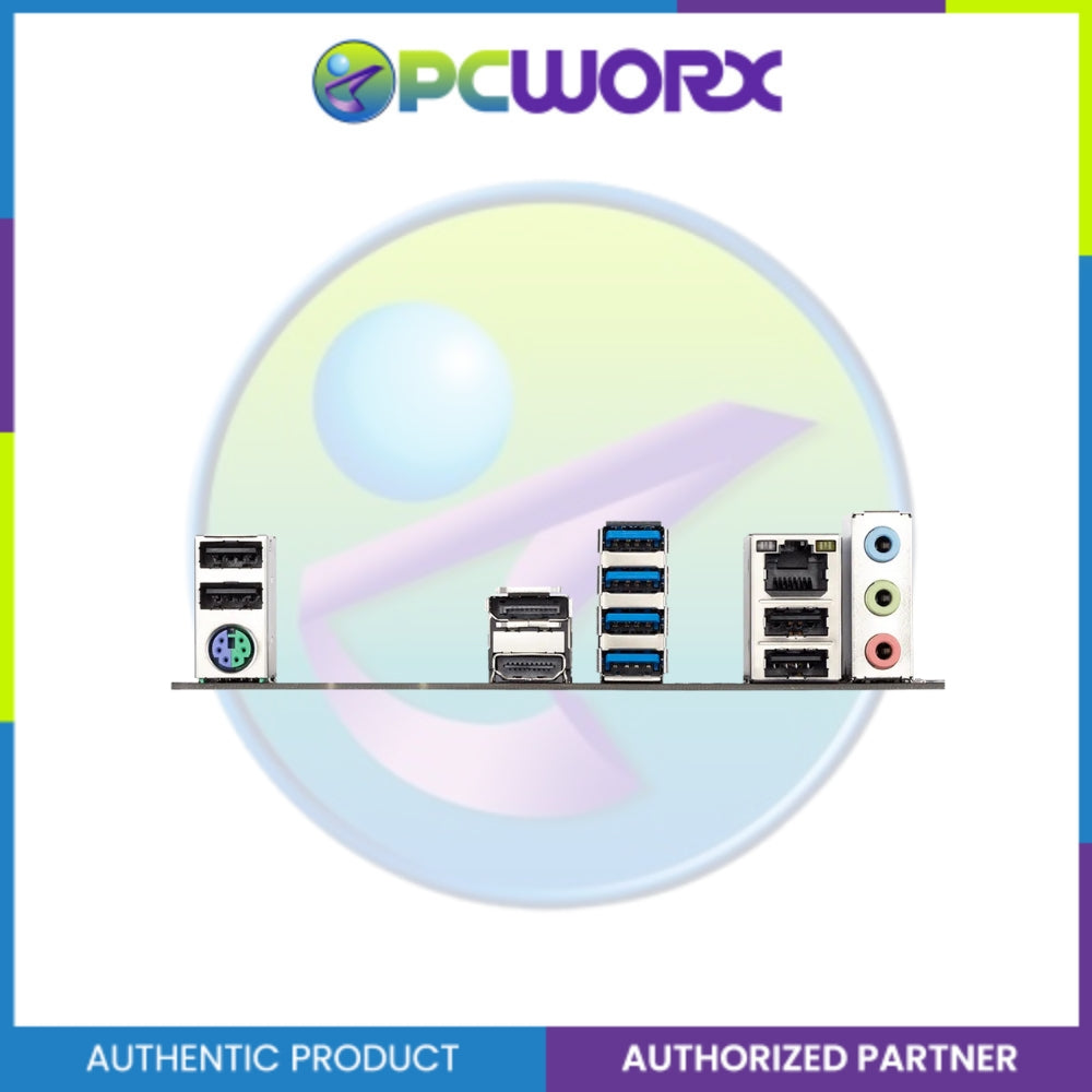 PS/2, DisplayPort, HDMI, 4 x USB 3.2 Gen1, 4 x USB 2.0/1.1, RJ-45, 3 x audio jacks |