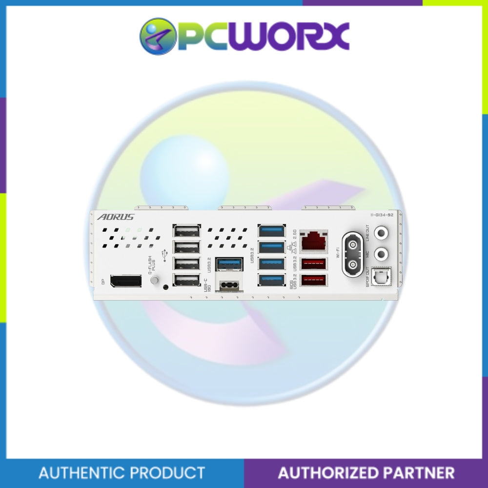 1 x DisplayPort (Note) 1 x Q-Flash Plus button 4 x USB 2.0/1.1 ports 1 x USB Type-C® port, with USB 3.2 Gen 2 support 5 x USB 3.2 Gen 1 ports 1 x RJ-45 port 2 x USB 3.2 Gen 2 Type-A ports (red) 2 x antenna connectors (2T2R) 2 x audio jacks 1 x optical S/PDIF Out connector