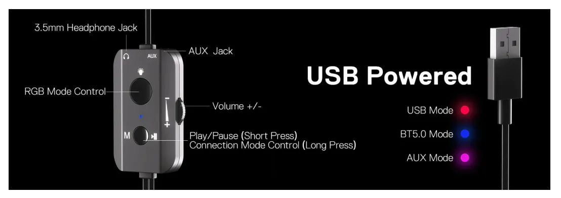 USB-powered USB sound card and AUX wired mode offers stable audio transmission, which allows this rockstar to party on wide type of stages for PC, TV, Laptop, and other devices.