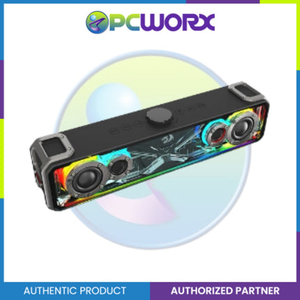 Item Size 14.96 x 2.83 x 3.62 inches Item Weight 2.23 pounds Connectivity BT/Wired Bluetooth Range 10 meters 2.0 Channel Stereo yes Maximum Power Output 30W Control Mode Touch-Control (6 touch points) Frequency Response 120Hz–20kHz RGB LED Backlit Yes EQ Modes Music, Game, and Movie Drivers Dual 15W Drivers and 2 Bass Diaphragms |