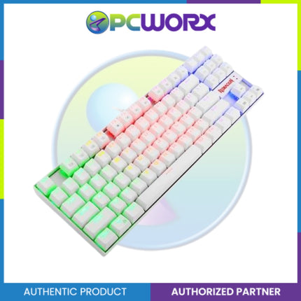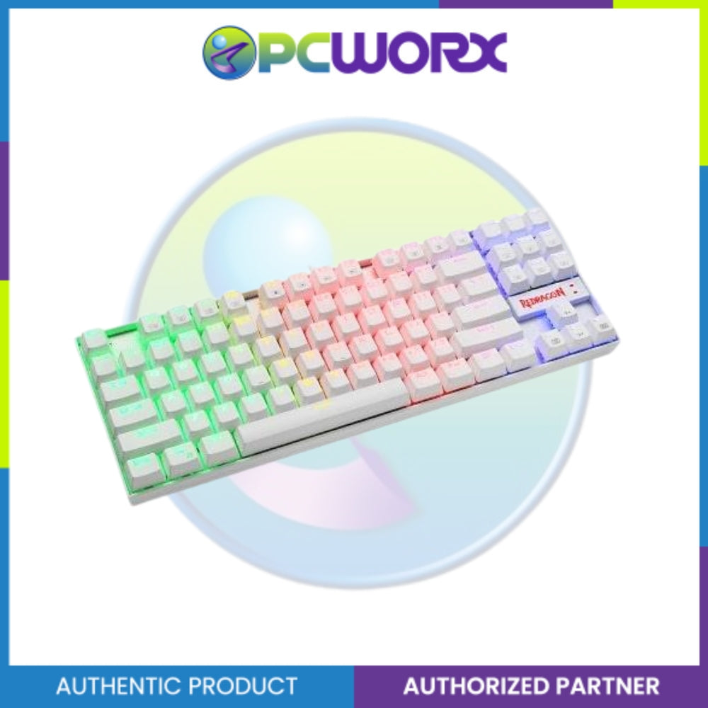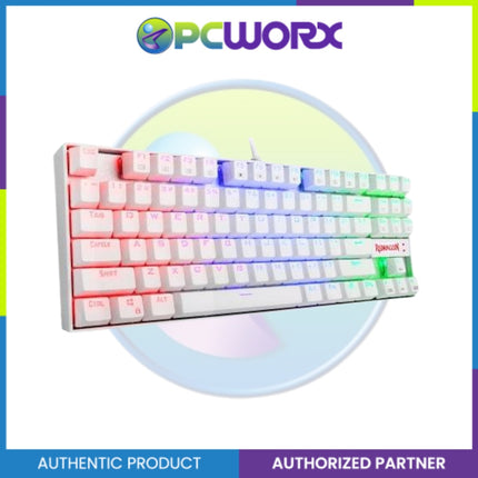 WHITE VERSION; 87 Keys Small Compact Mechanical Gaming Keyboard with Custom Mechanical Feeling Keyboard Switches (Cherry MX Blue equivalent). Designed for longevity with greater durability and responsiveness. The Mechanical Keyboard Keys offer medium resistance, crisp but a quieter click sound, and precise tactile feedback for ultimate typing and gaming performance. The switches are of the highest quality, tested for 50 million keystrokes