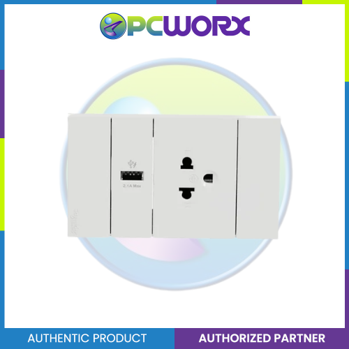 Schneider AvatarOn A 16A 250V 3 Pin USB Charger Universal Socket White A70426USB-UST-WE | Switch Outlet
