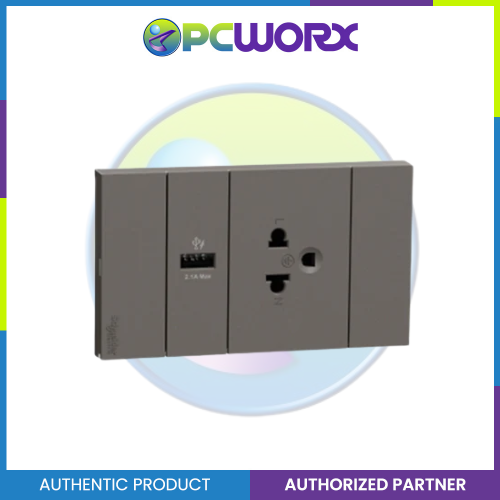 Schneider AvatarOn A 16A 250V 3Pin Universal Socket with USB Charger Black A70426USB-UST-BK