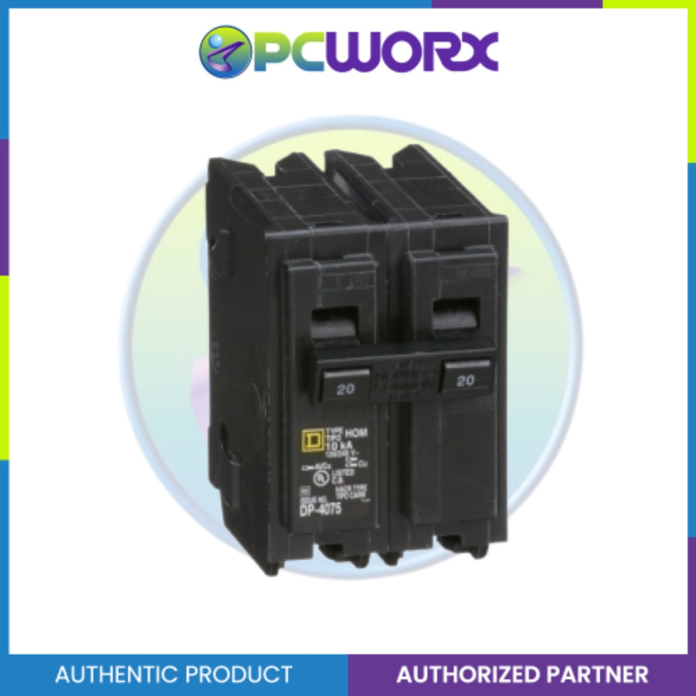 Homeline miniature circuit breakers are engineered and designed for fast installation and superior circuit protection. Homeline circuit breakers are designed to plug into Homeline load centers to provide circuit protection. This circuit breaker provides standard circuit protection and is HACR rated. This 2 pole circuit breaker with plug in mounting is rated 20A at 120/240 VAC. HOM breakers provide 10 kA breaking capacity. The electrical connection is a clamp terminal that will accept 2 wires. The clamp terminal will accept a wire range of 14 AWG to 8 AWG copper or aluminum wire. This circuit breaker has a height of 3.13 inches, a width of 2.0 inch and depth of 2.98 inches. HOM Homeline miniature circuit breakers are UL Listed.