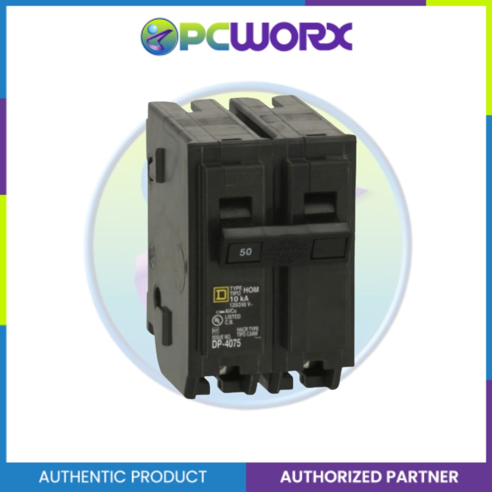 Homeline miniature circuit breakers are engineered and designed for fast installation and superior circuit protection. Homeline circuit breakers are designed to plug into Homeline load centers to provide circuit protection. This circuit breaker provides standard circuit protection and is HACR rated. This 2 pole circuit breaker with plug in mounting is rated 50A at 120/240 VAC. HOM breakers provide 10 kA breaking capacity. The electrical connections are box lugs that will accept 1 wires. The box lugs will accept a wire range of 8 AWG to 2 AWG copper or aluminum wire. This circuit breaker has a height of 3.13 inches, a width of 2.0 inch and depth of 2.98 inches. HOM Homeline miniature circuit breakers are UL Listed.