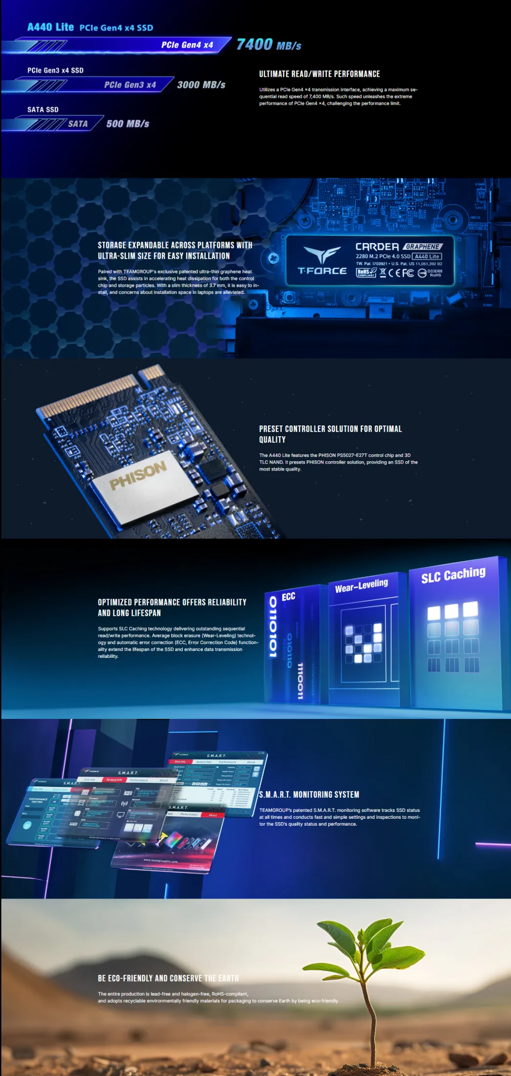 TeamGroup TM8FFQ512G0C129 512GB A440 Cardea Lite Graphene HeatSink M.2 NVME SSD