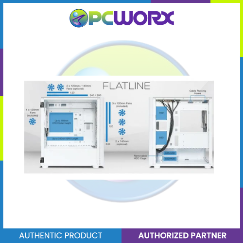 Tecware Flatline TG m-ATX Mini-Tower w/ 3x120mm fans White
