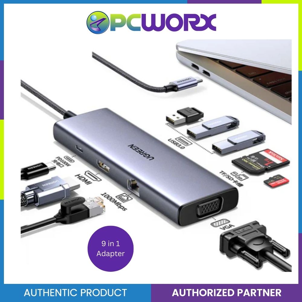 Ugreen CM498/15600 9in1 USB-C 3.0+HDM+VGA+RJ45+SD&TF+PD100W Multifunction 15cm