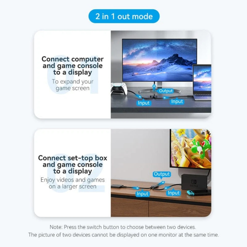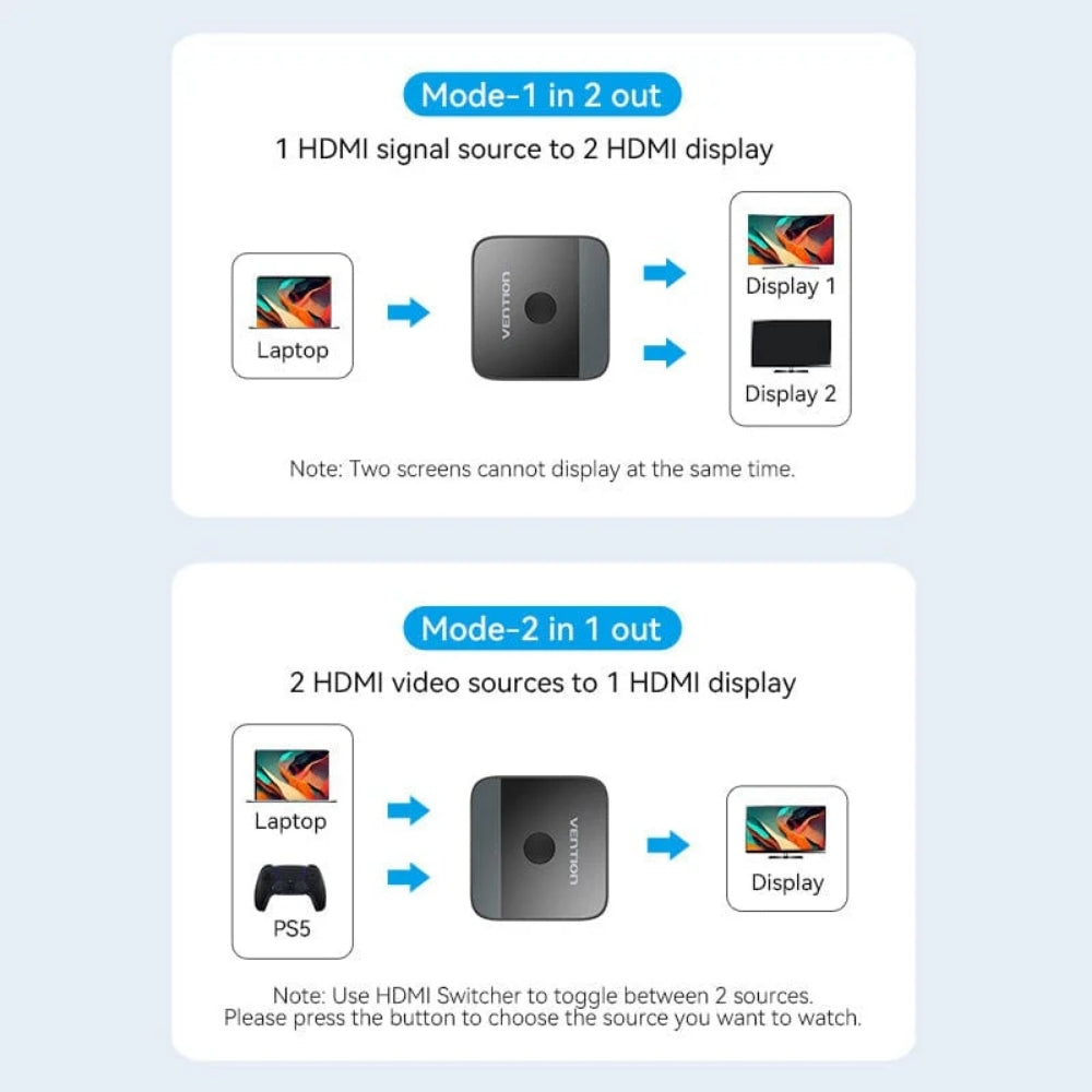 Vention AKOB0 HDMI 2.0 Switcher/Splitter 2-Port Bi-Direction 4K Black